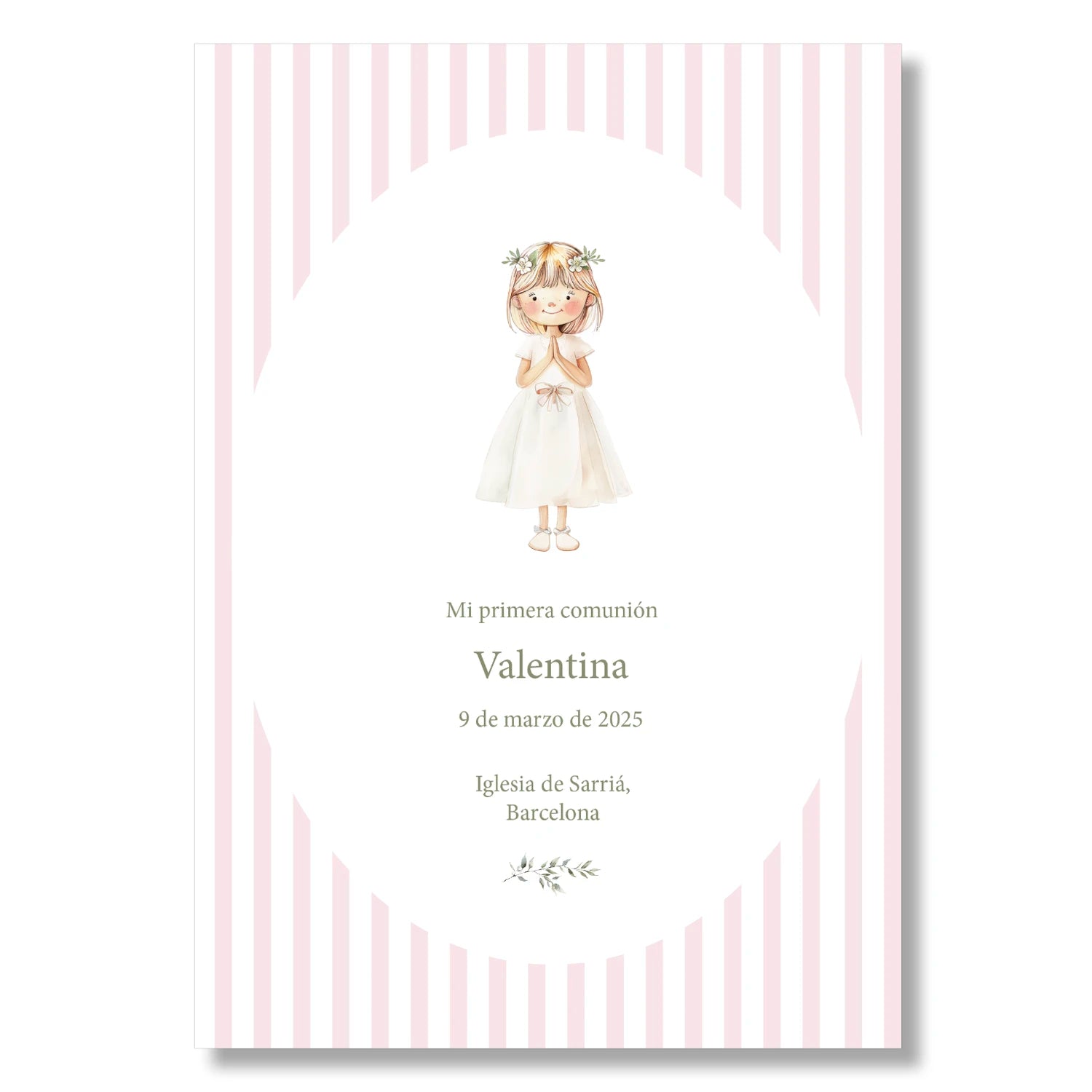 Diseñamos detalles de comunión personalizables como recordatorios, etiquetas, láminas de menú de bienvenida, pensados para acompañar cada momento de este día tan importante.